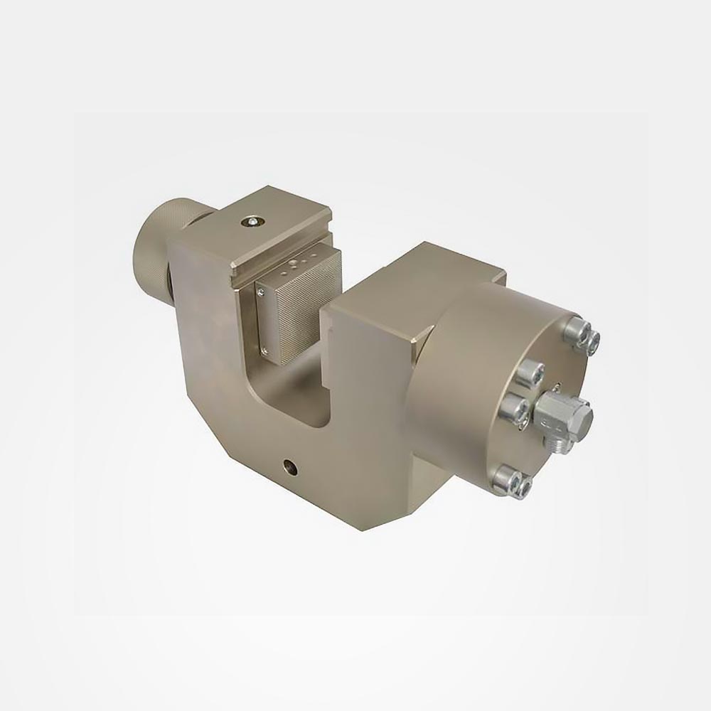 L’eccentrica forma del pistone con la sua lunga corsa, crea un posizionamento in profondità dell’area di serraggio e anche un lungo percorso di presa. Questi dispositivi garantiscono un rapido serraggio, e rilascio, del campione. Sono disponibili sia con pistone singolo che doppio. Nel caso del modello a cilindro singolo, una manopola regolabile manualmente permette di impostare la posizione delle ganasce da un lato. I doppi cilindri assicurano invece che le impugnature si chiudano simmetricamente attorno all’asse del campione di prova.